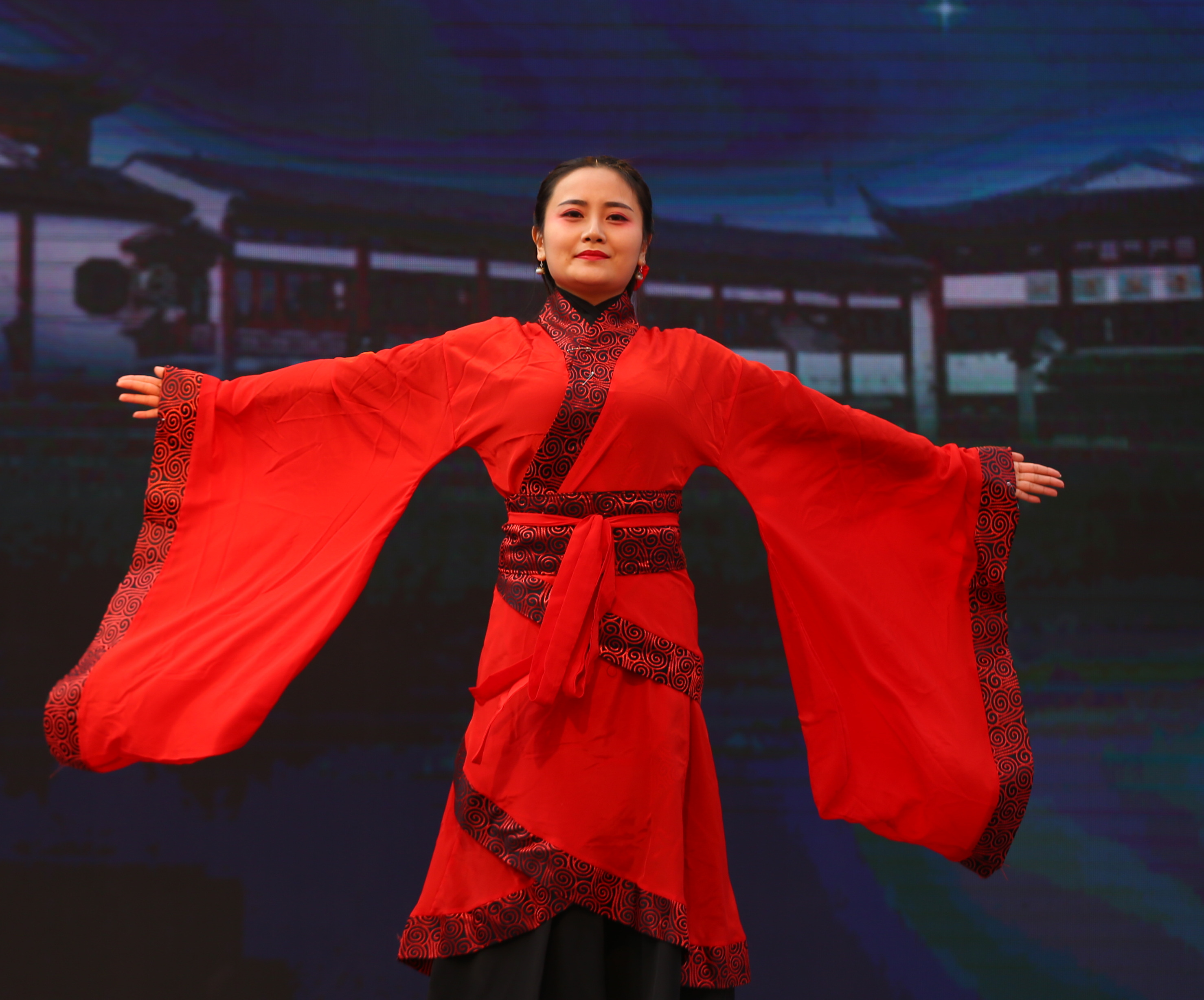 南通职业大学学生表演舞蹈《重回汉唐》。