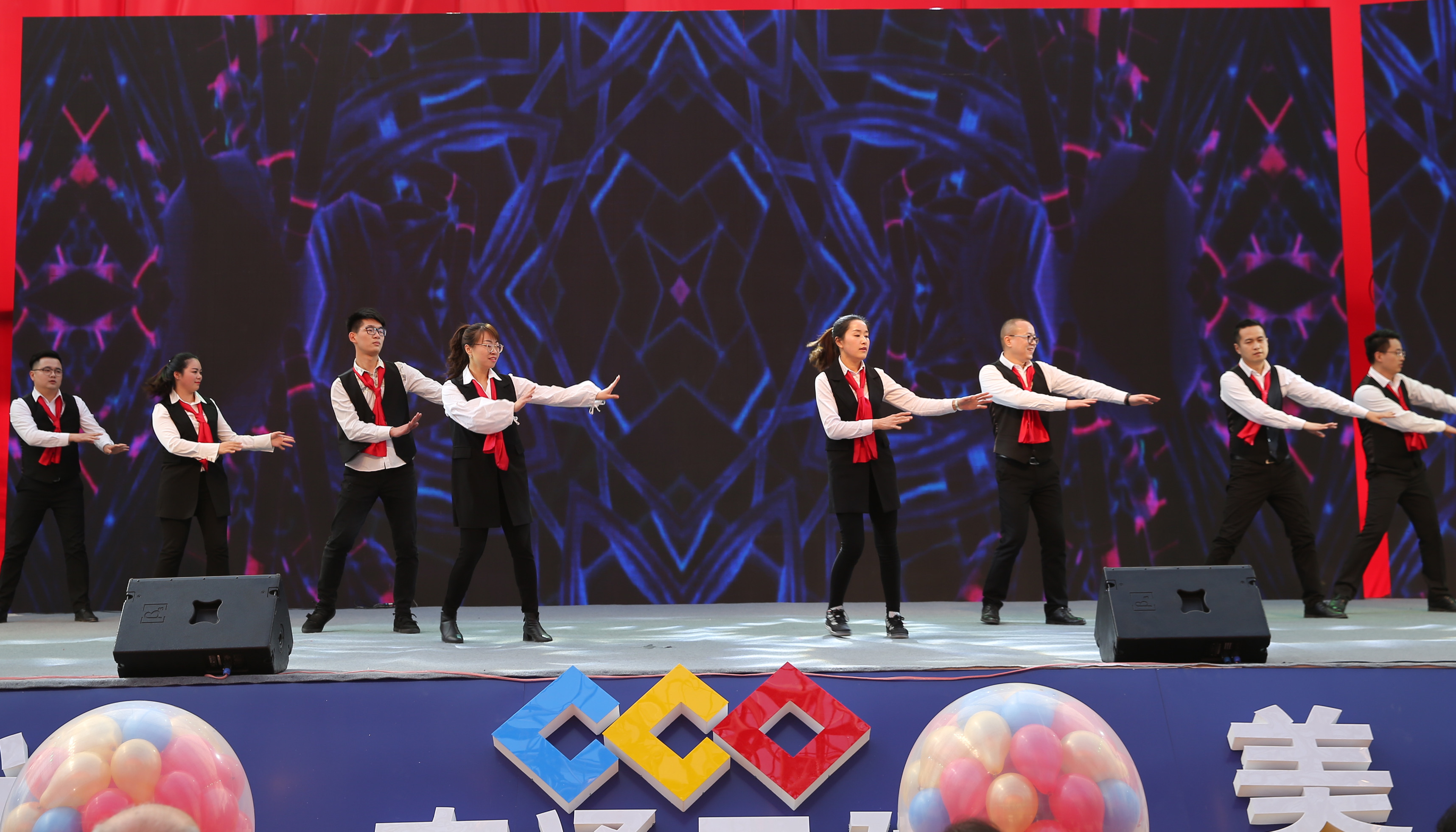 集团总部员工表演歌舞《共筑中国梦》。