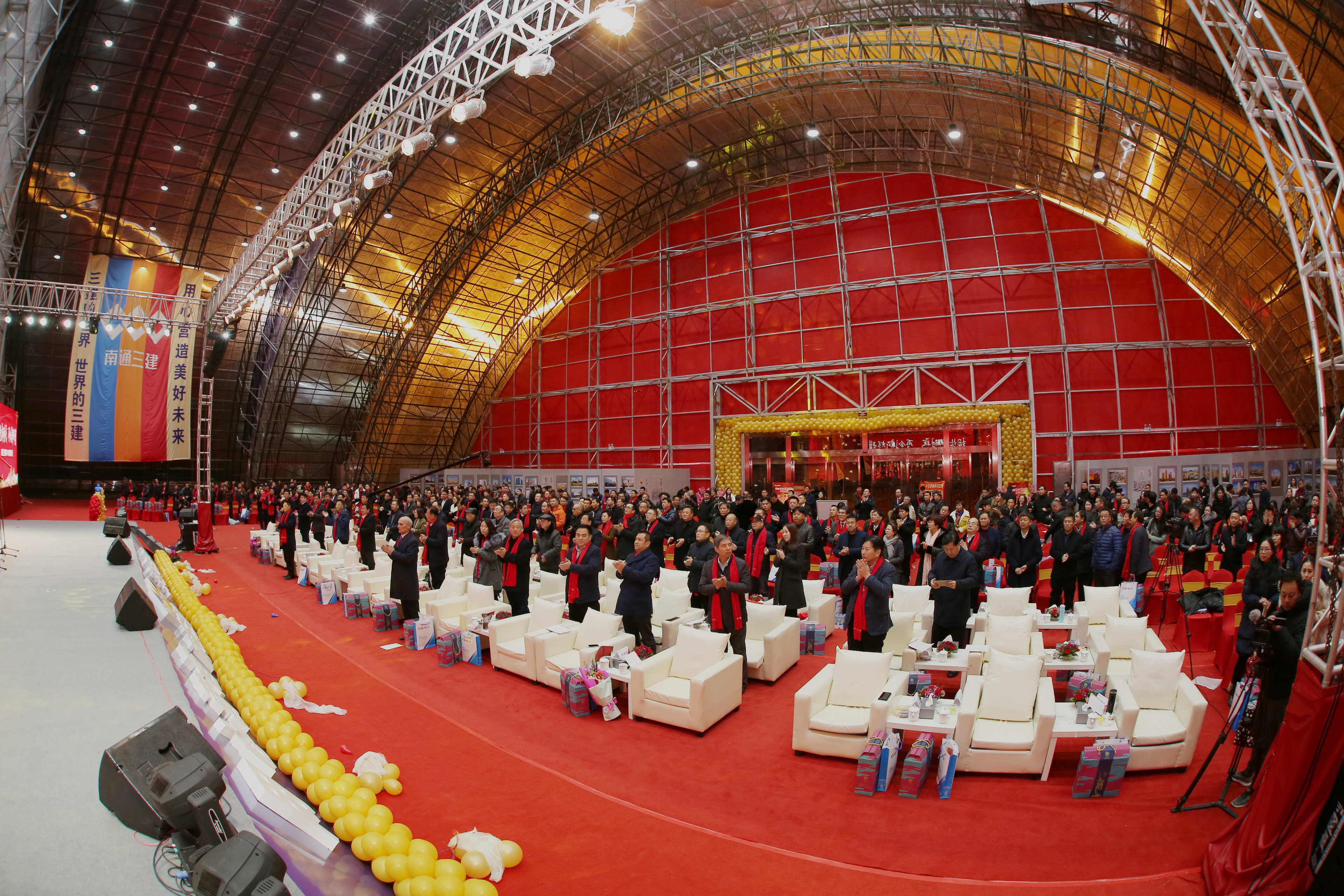 金鸡起舞辞旧岁,瑞犬纳福迎新年。2月12日,南通三建2018迎新春年会暨“感动三建年度人物”颁奖典礼在集团总部阳光广场隆重举行,特邀嘉宾塞尔维亚驻华大使米兰·巴切维奇、南通职业大学党委书记秦志林出席活动。控股集团董事长黄裕辉,副董事长、总裁周炳高,副董事长、股份公司总裁施晖等全体高管及事业合伙人;集团总部全体干部员工、各板块中层以上管理人员、离退休人员、工程处负责人近1000人共同参与了本次盛会。