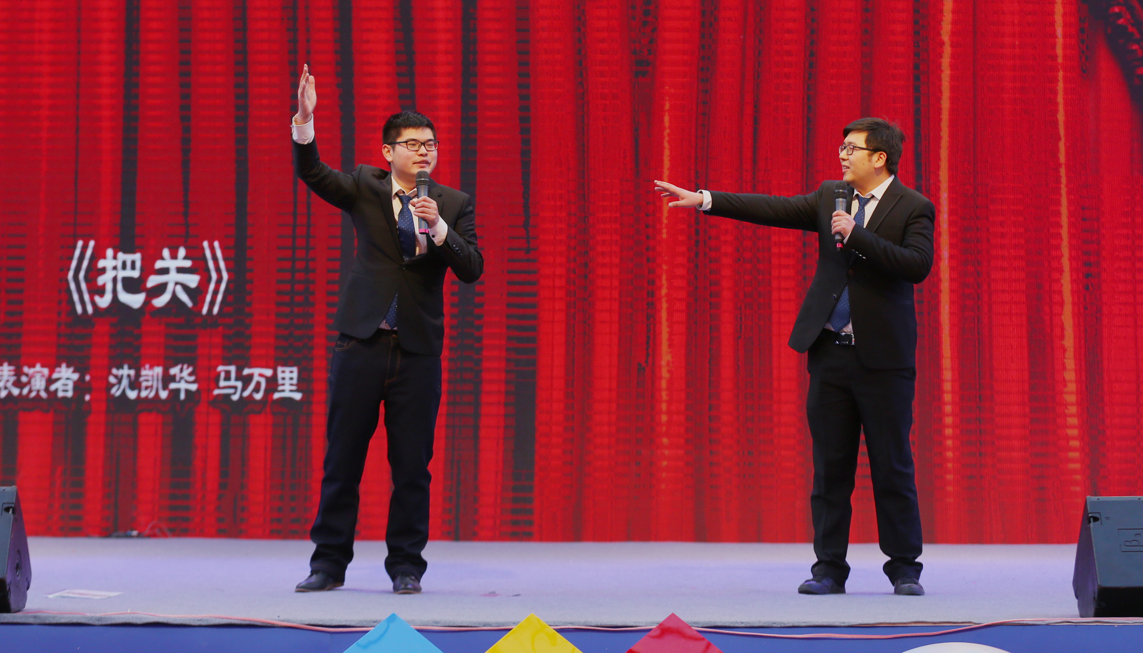 总部员工表演相声《把关》。