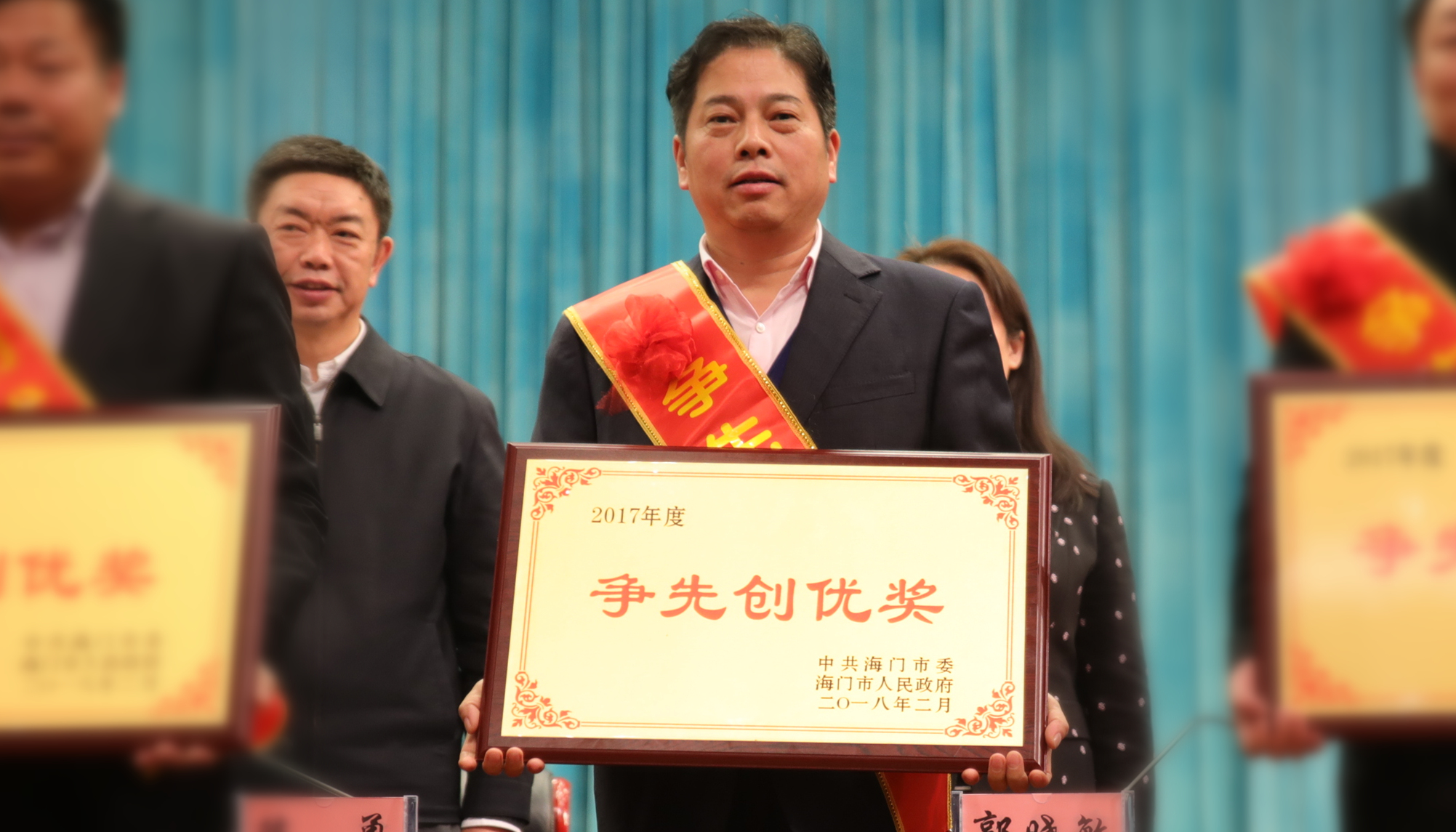 2月23日下午,海门市委市政府召开全市现代建筑产业推进大会,市委书记陈勇,市委副书记、市长郭晓敏,市委副书记葛志娟等领导出席会议。会上,南通三建获市委市政府颁发争先创优,创鲁班、国家优质工程、国家级(专业)优质工程,创国家建筑产业化基地,优秀建筑企业,外经工作先进集体等奖项,控股集团董事局主席黄裕辉在会上交流发言。