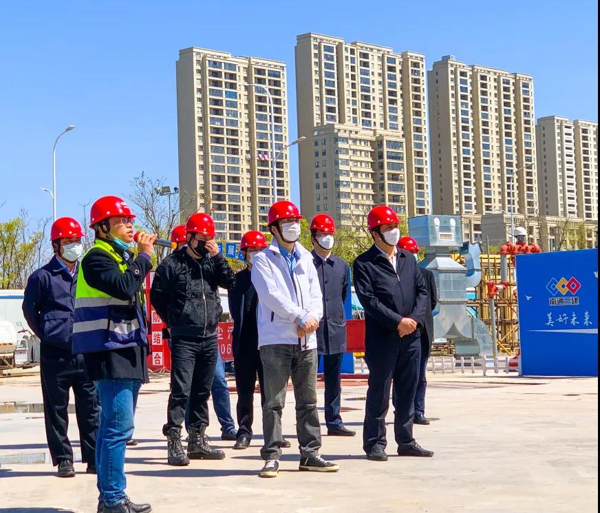 4月5日,春和景明,大地送暖。按照中央和省、市部署要求,一手抓疫情防控,一手抓工程建设,南通三建控股集团董事长黄裕辉亲赴南通海门部分重点在施工地现场调研,检查项目复工复产情况。控股集团副董事长、总裁周炳高,控股集团副董事长、股份公司总裁施晖等董事、监事成员及高管团队参加本次调研。