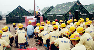 2008年汶川大地震,南通三建火速抵达绵竹灾区进行救灾援助