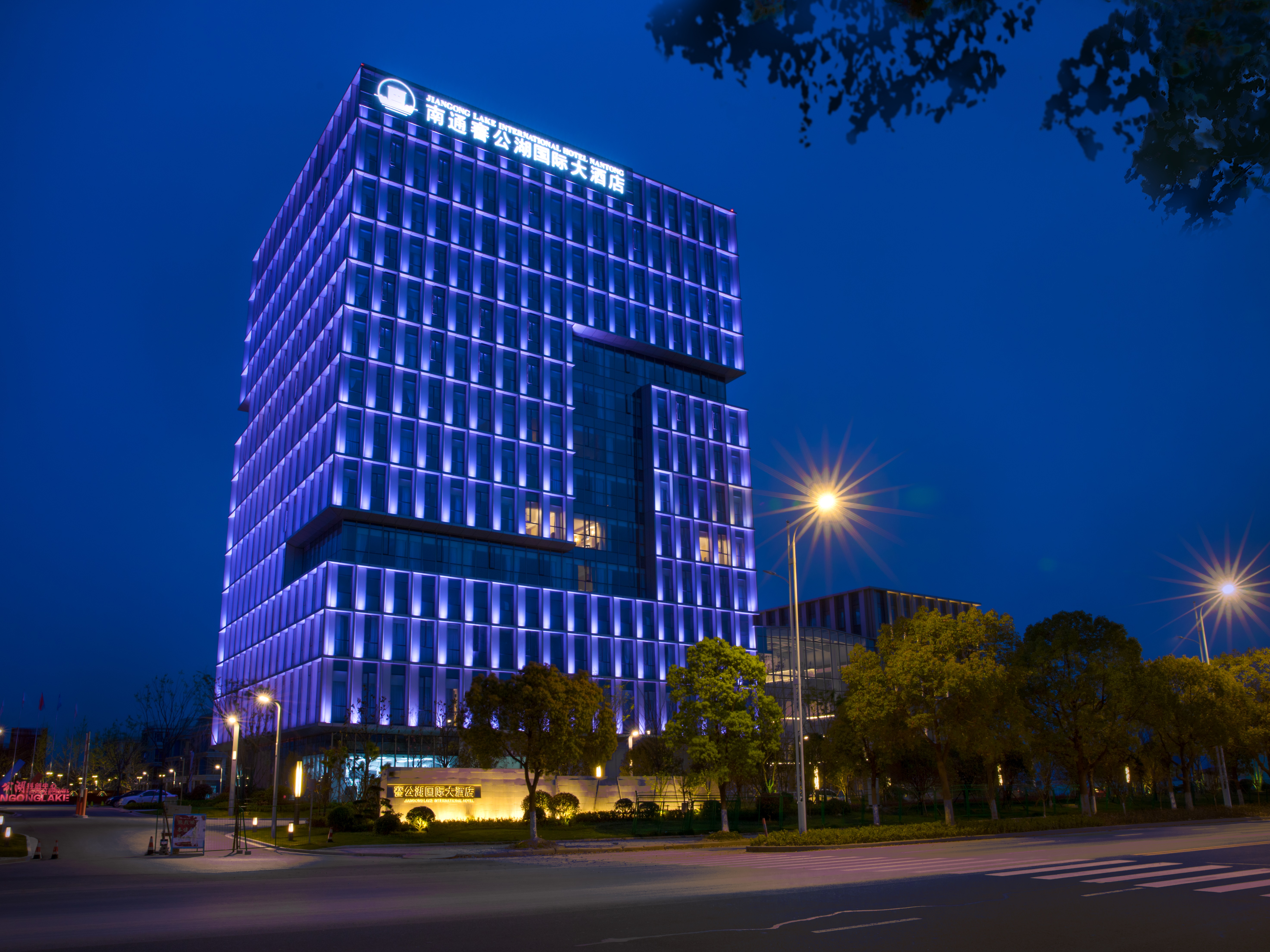 謇公湖国际大酒店位于江苏南通海门经济技术开发区香港路588号,紧依謇公湖风景区及东洲河风景带,是按四星级标准建造的豪华商务酒店。酒店总建筑面积约3万平方米,集住宿、餐饮、会议和娱乐一体,拥有豪华客房175间套,功能齐全的会议厅3个,具有风味独特的西式自助餐厅,精致典雅的中餐包房18个,可同时容纳400人的大型宴会厅以及健身房、SPA等设施。