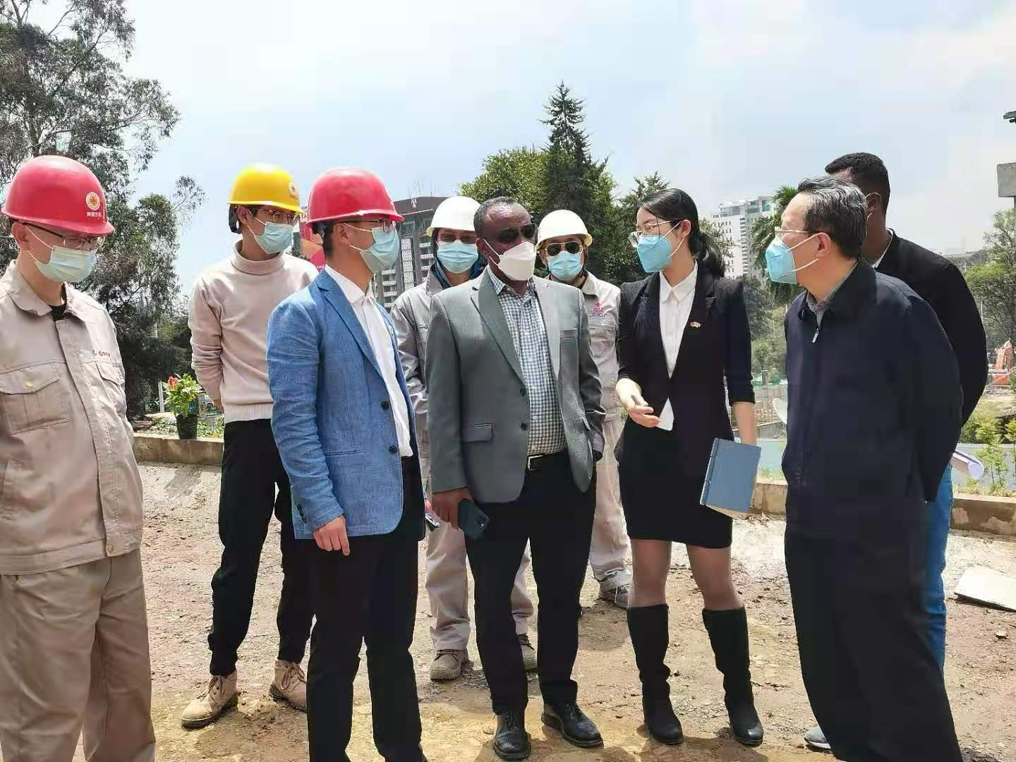当地时间2021年9月29日上午,中国驻埃塞俄比亚大使赵志远在经商处杨依航公参、埃方总理府代表的陪同下,来到南通三建承建的中国援埃塞俄比亚河岸绿色发展项目二期(中央广场标段)(以下简称“河岸项目”)视察工作,了解项目建设进展,提出工作要求,关心问候项目员工。